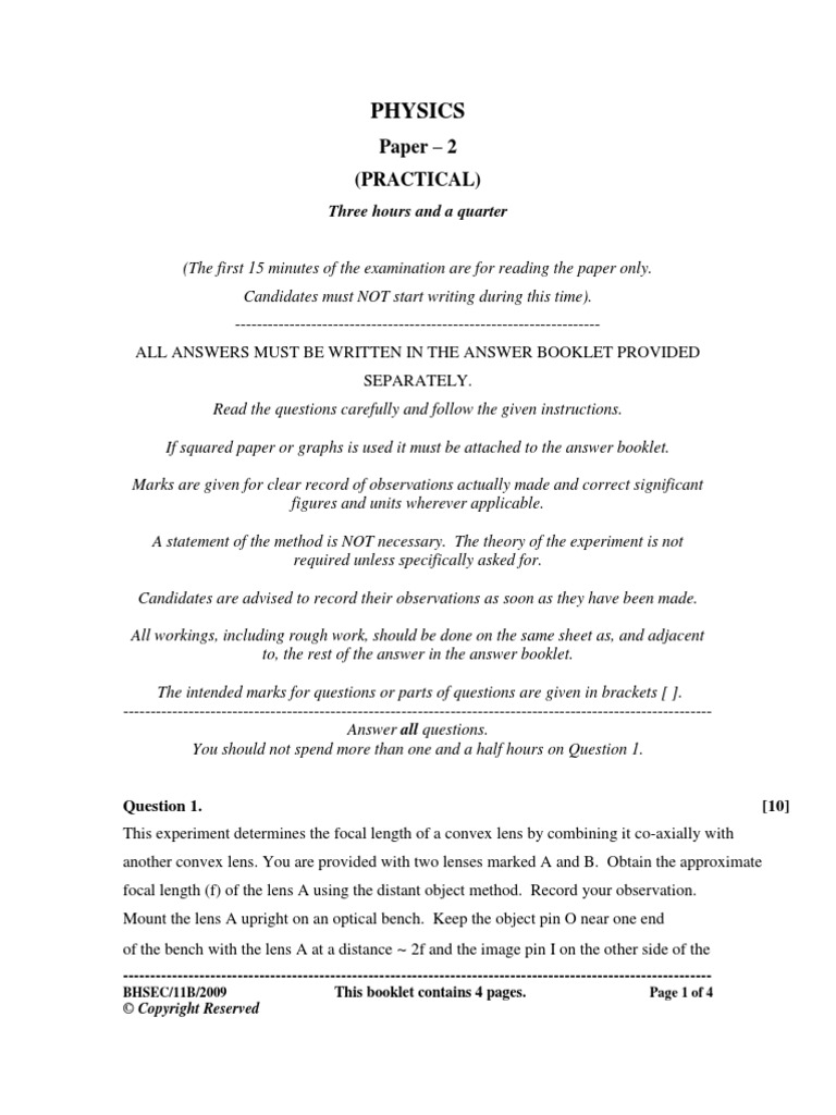 Bhsec Physics Practical 2009 Lens Optics Electromagnetic Radiation
